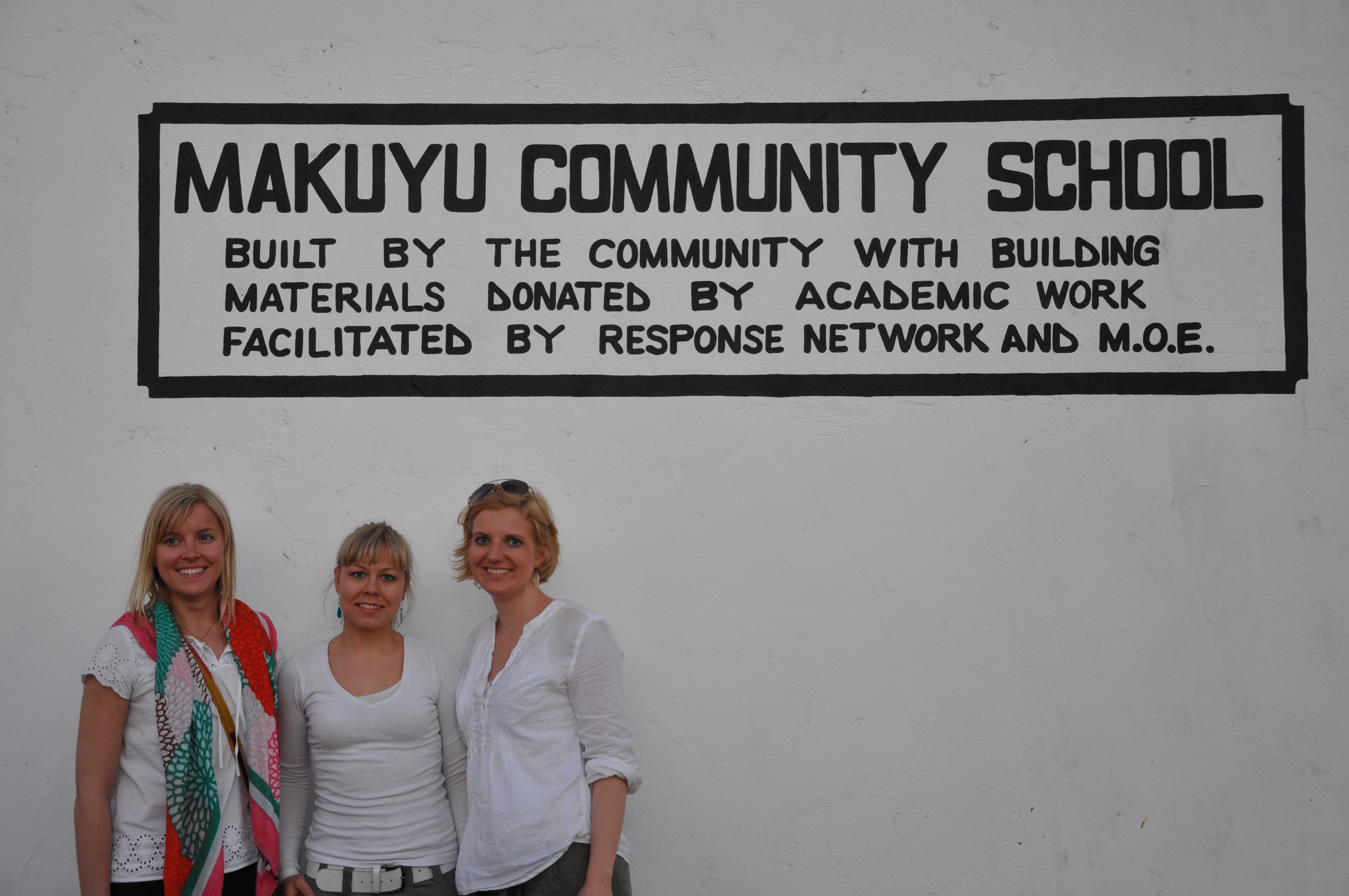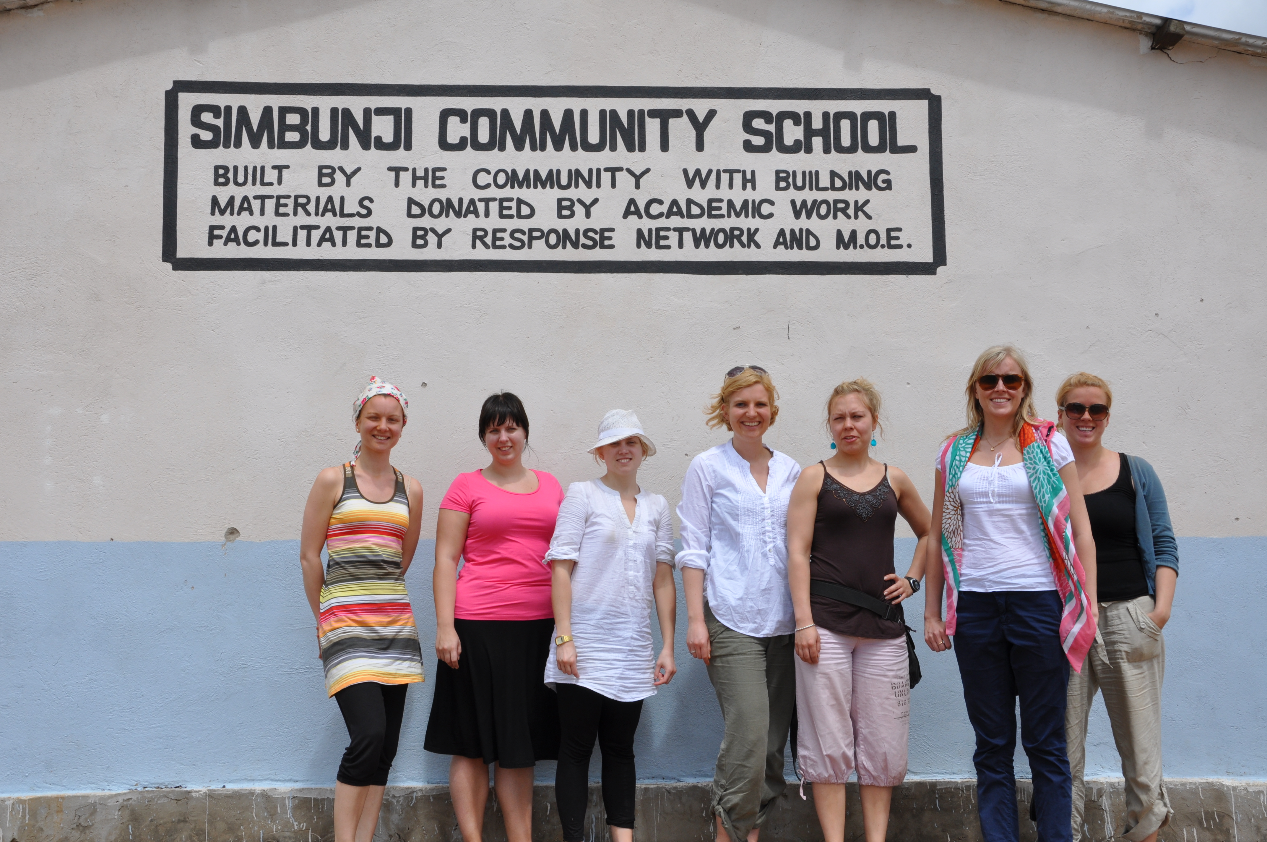 Malin, Emma, Cecilia, Susanne, Tiina, Helena and Anna outside Simbuni Community School
