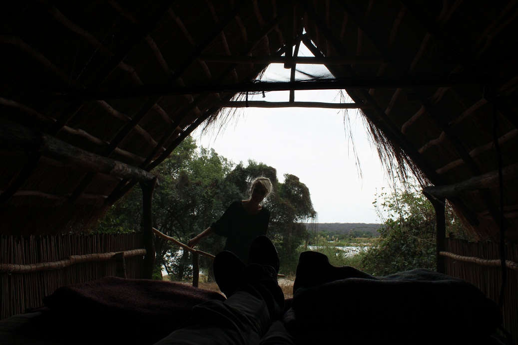 This weekend we went to a little island in Zambezi River between Zambia and Zimbabwe. An oasis in the jungle. Sleeping in little fishing huts, totally open except from some roof of grass. Listening to birds, bugs, frogs and hippos. Went fishing Tigerfish in canoes made of wood. Watched elephants come down for water and regretted that I, in the middle of the river, asked the fisherman how many crocs there were in the river; “Oh there are so many, can even count them”.